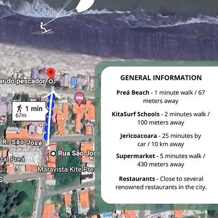 A Praia do Prea fica a 1.1 km de distância e o aeroporto de Jericoacoara está a 15 km desta pousada.